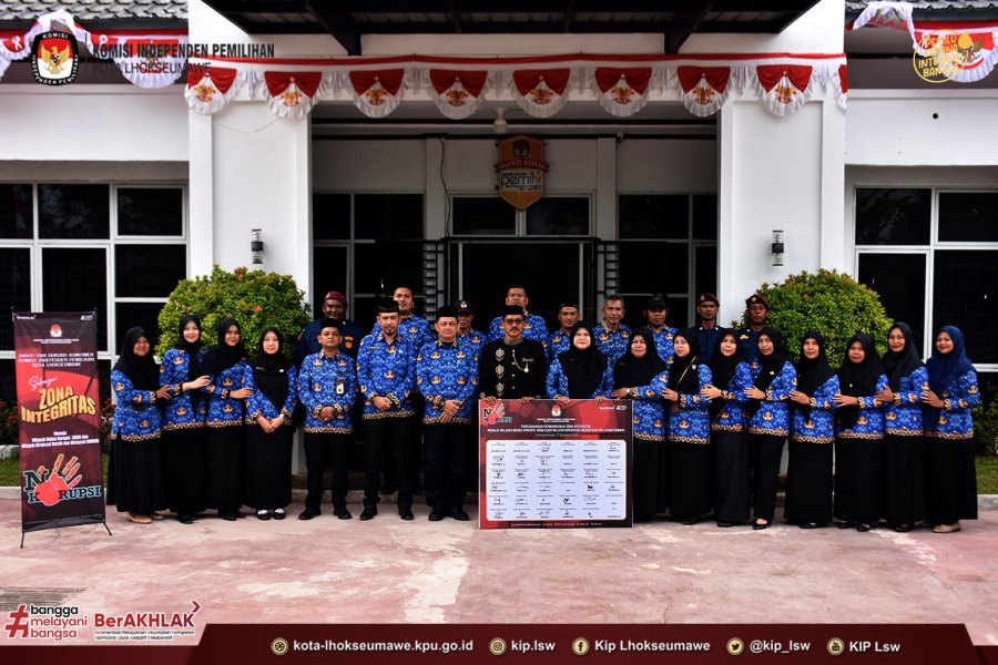 KIP Kota Lhokseuamwe melakukan penandatanganan pencanangan pembangunan zona integritas menuju Wilayah Bebas Korupsi (WBK) dan Wilayah Birokrasi Bersih dan Melayani (WBBM). Bertempat di pelataran kantor KIP Kota Lhokseumawe, pada hari Minggu 17/8/2025, Anggota KIP Divisi Teknis Penyelenggara Pemilu, T. Marbawi, didampingi Sekretaris, Yuni Raziati, dan jajaran Kasubbag, serta staf Sekretariat KIP Kota Lhokseumawe menandatangani pakta integritas Pencanangan Pembangunan Zona Integritas. Dalam hal ini, Zona integritas adalah wujud komitmen bersama, untuk mewujudkan perubahan mindset jajaran KIP Kota Lhokseumawe dalam peningkatan tata kelola pelayanan kepada masyarakat.