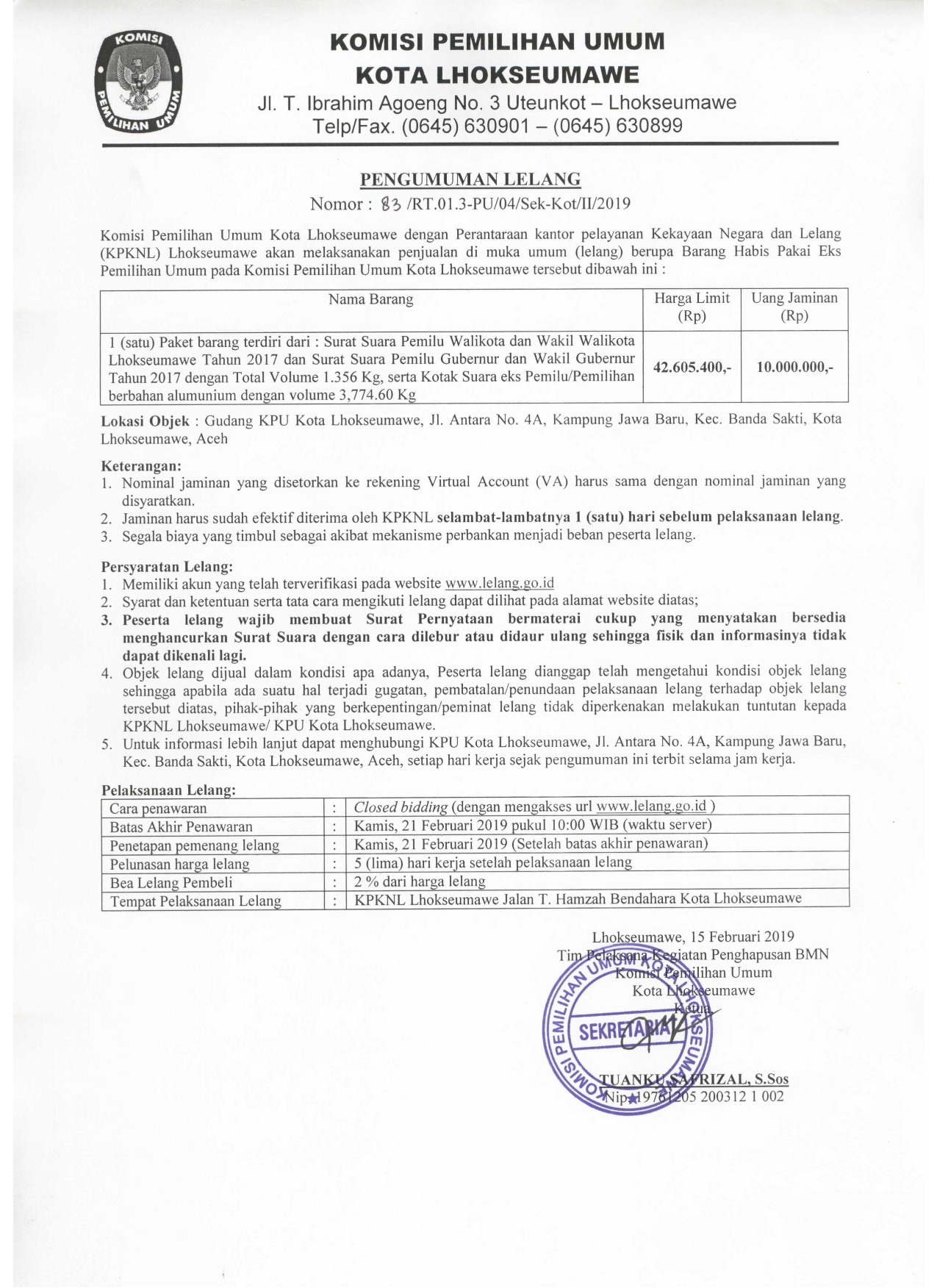Sebanyak 8 anggota Panitia Pemilihan Kecamatan (PPK) tambahan untuk Pemilu 2019 resmi dilantik pada Rabu, (2/1/2019). Pelantikan berlangsung di Kantor Komisi Independen Pemilihan (KIP) Kota Lhokseumawe, dipimpin Ketua KIP Kota Lhokseumawe, Mohd. Tasar, BA., MA.