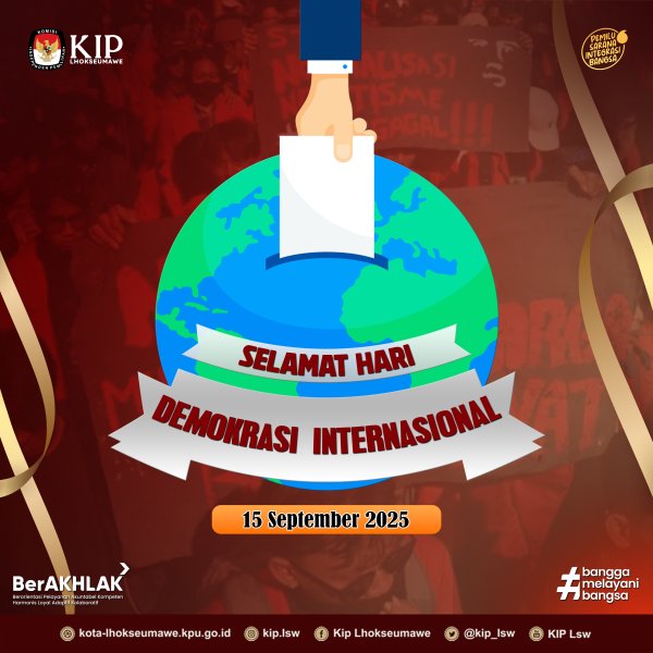 Komisi Independen Pemilihan Kota Lhokseumawe mengucapkan Selamat Hari Demokrasi Internasional Tahun 2025.
