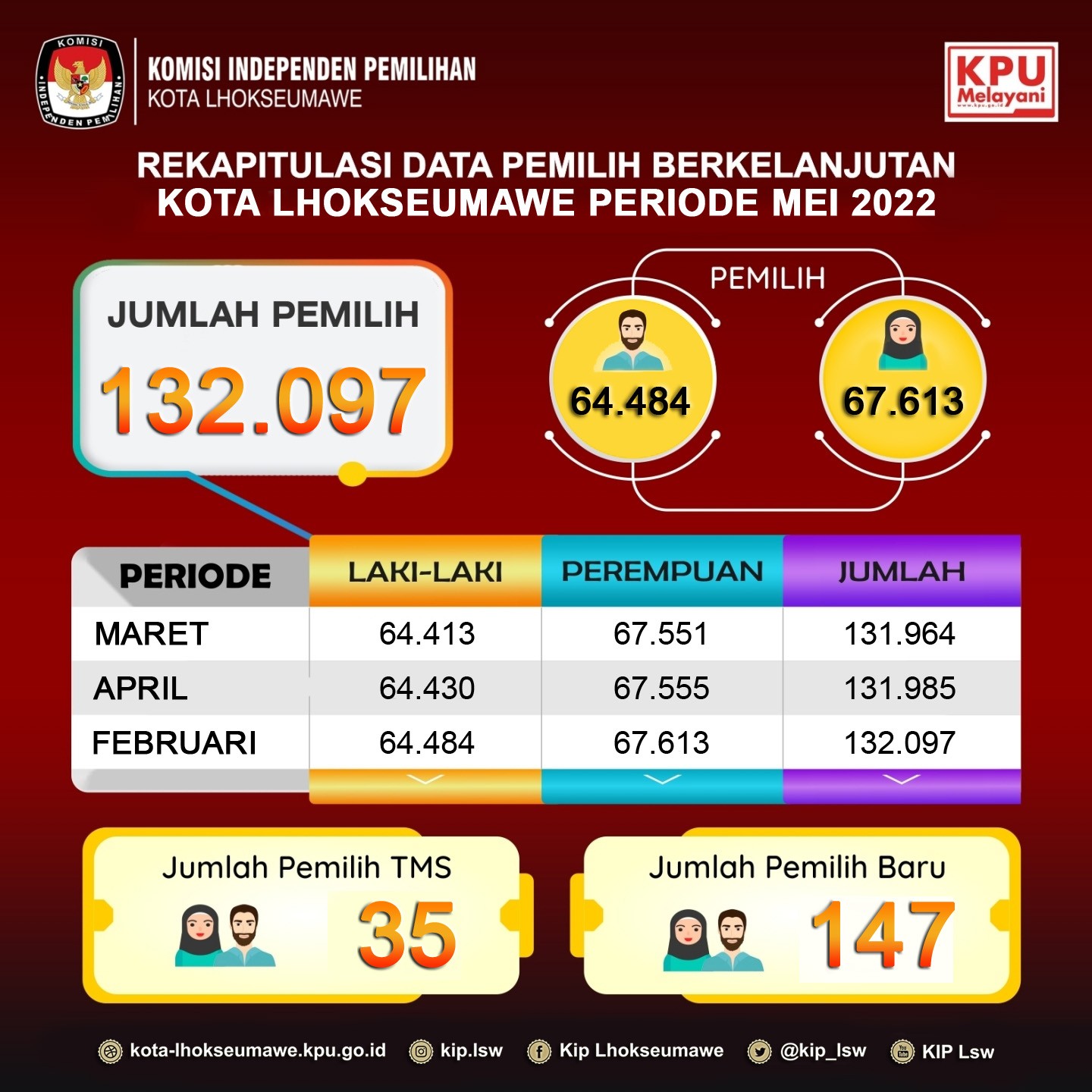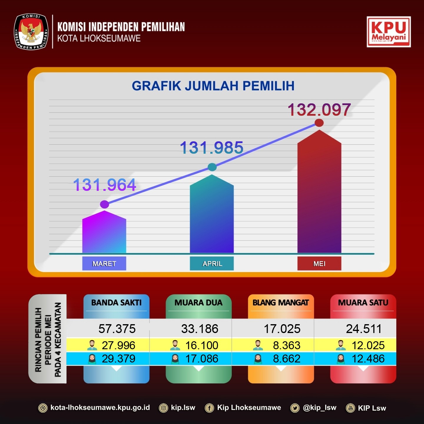 Infografis Rekapitulasi Data Pemilih Berkelanjutan Periode Mei Tahun 2022 di Kota Lhokseumawe.