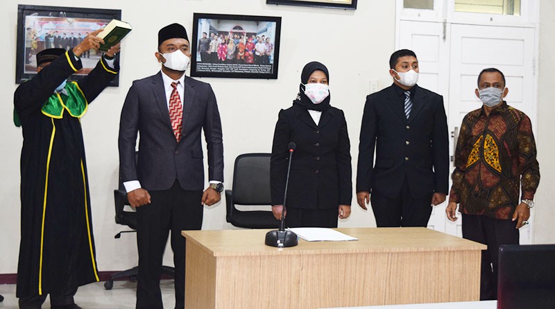Lhokseumawe | Dua Pejabat Struktural eselon 4 di lingkungan Sekretariat KIP Kota Lhokseumawe, dilantik menjadi pejabat fungsional oleh Komisi Pemilihan Umum (KPU) Republik Indonesia, Selasa, 01 Desember 2020. Adapun pejabat struktural yang disetarakan jabatan kedalam jabatan fungsional adalah T.Harist Muzani, SH, M.I.Pol (Kepala Subbagian Hukum dan Sumber Daya Manusia) dan Masyitah, ST (Kepala Subbagian Perencaan, Data dan Informasi). Pelantikan turut disaksikan oleh Sekretaris KIP Kota Lhokseumawe, T. Joan Virgiansyah dan Komisioner Divisi Pemilih, Partisipasi Masyarakat dan Sumber Daya Manusia, Mukhtar Yusuf.
