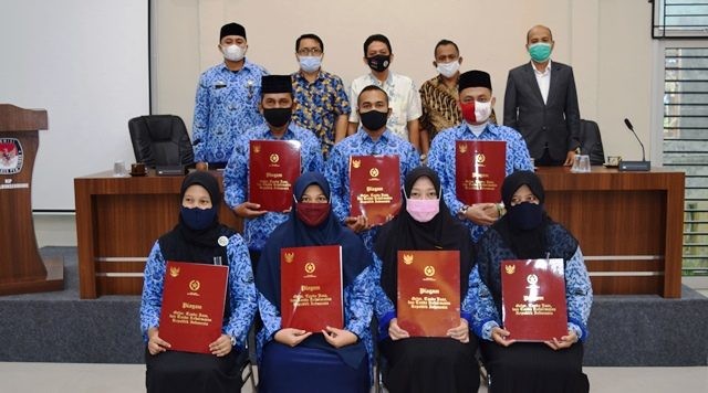 Lhokseumawe | Sebanyak 8 (delapan) Pegawai Negeri Sipil (PNS) di lingkungan Sekretariat Komisi Independen Pemilihan (KIP) Kota Lhokseumawe yang telah mengabdi lebih dari 10 tahun mendapatkan Penghargaan Satya Lencana dari Presiden RI.