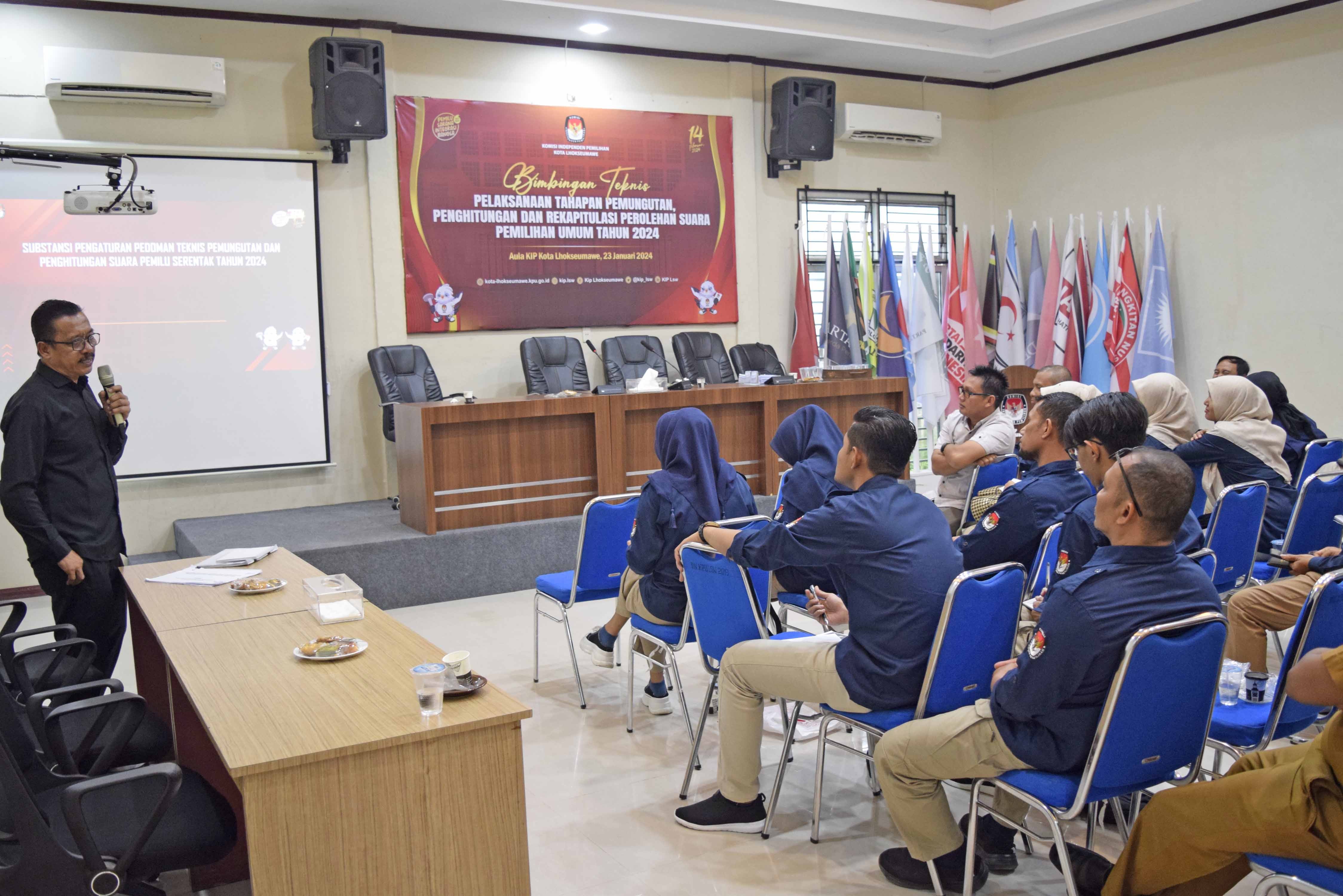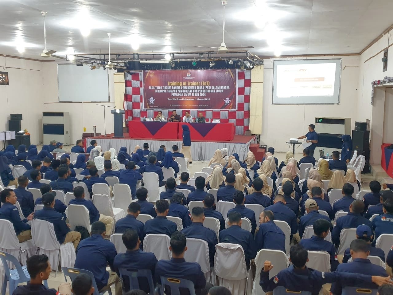 Komisi Independen Pemilihan (KIP) Kota Lhokseumawe melaksanakan kegiatan Bimbingan Teknis Training of Trainer (ToT) kepada 204 Panitia Pemungutan Suara (PPS) dan 20 Panitia Pemilihan Kecamatan (PPK) sebagai Fasilitator dalam rangka persiapan tahapan pemungutan dan penghitungan suara untuk Pemilu Serentak Tahun 2024, di Ruang Pertemuan Hotel Lido Graha, Lhokseumawe, pada Rabu (24/1/2024). Kegiatan dibuka oleh Ketua KIP, Abdul Hakim dan turut dihadir Nur Azizah Fungsional Penata Kelola Pemilu Ahli Madya KIP Aceh, Ketua Panwaslih Lhokseumawe Dedy Syahputra, anggota KIP Divisi Perencanaan Data dan Informasi Zainal Bakri, Divisi Hukum dan Pengawasan Indrawan Eka Putra, Divisi Teknis Penyelenggaraan T. Marbawi, dan Sekretaris KIP Yuni Raziati. Ketua dan Anggota KIP Kota Lhokseumawe turut memberikan materi sesuai dengan kapasitasnya, dalam pemaparan materinya Abdul Hakim menyampaikan bahwa bimbingan teknis ini sangat penting demi menyukseskan Pemilu dan PPK dan PPS harus siap menjadi trainer yang nantinya bisa melakukan bimtek secara berjenjang hingga ke tingkat KPPS. "Kegiatan ini dilakukan untuk memberikan pemahaman kepada PPK dan PPS mengenai tugas KPPS dan teknis pelaksanaan pemungutan dan penghitungan suara di TPS. Termasuk mengontrol pelaksanaan pemungutan hitung oleh KPPS di 14 Februari 2024 nantinya", jelas Abdul Hakim. Selain pemaparan materi, peserta juga dibekali tata cara pengisian formulir model C1 Plano dan penggunaan aplikasi SIREKAP oleh Tim Sekretariat KIP Kota Lhokseumawe serta dibantu PPK.